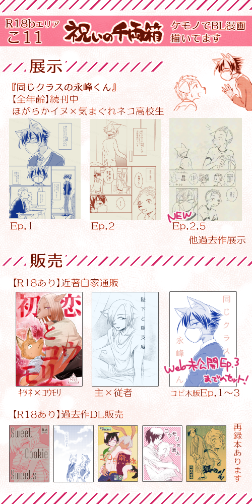 『同じクラスの永峰くん』の展示を中心に、直近同人誌の通販受付もする予定です。