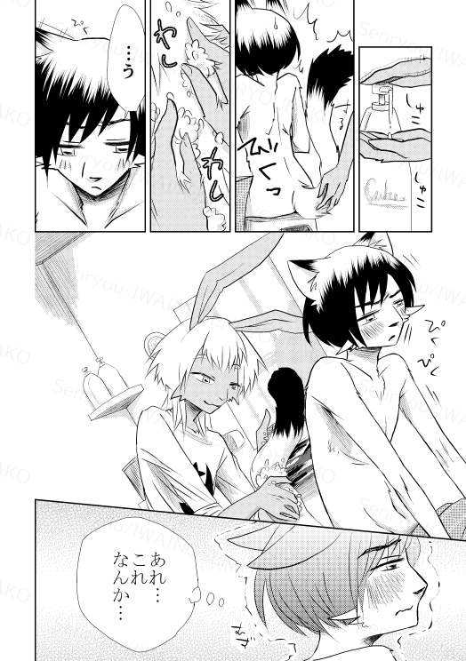 ウサギの彼氏はネコの彼氏の尻尾をお手入れしたい。